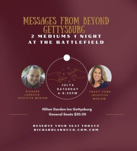 Richard LaRocco Psychic Medium is excited to announce an upcoming Gallery Event with Acclaimed Psychic Medium Tracy Vann. It is my honor to serve Spirit with Renowned Pittsburgh Medium Tracy Vann for an evening of heart-centered messages at the Hilton Garden Inn Gettysburg.